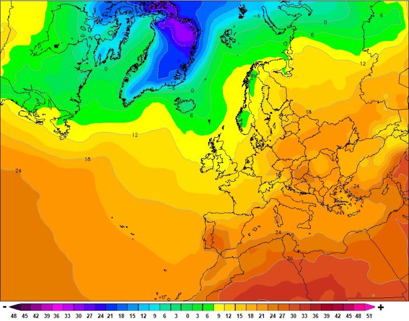 Die Achse des Höhentrogs verläuft dabei vom Nordmeer zum westlichen Mittelmeer. Mit einer nordwestlichen Strömung gelangt maritime Polarluft nach Mitteleuropa, der osten Mitteleuropas liegt im Zustrom von feucht warmer Mittelmeerluft.